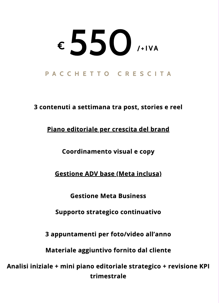 Una gestione professionale permette di mantenere un’immagine coerente, riconoscibile e curata, capace di trasmettere fiducia e credibilità. Affidarsi a specialisti significa comunicare in modo strategico, costante e allineato agli obiettivi reali del tuo business.